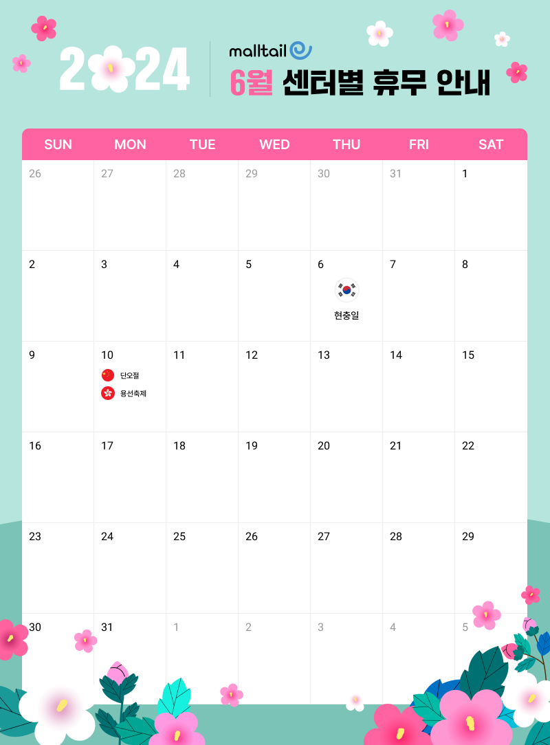 | 제목 | [공지] 2024년 6월 각 센터별 공휴일 안내 | 등록일 | 2024-05-29 |