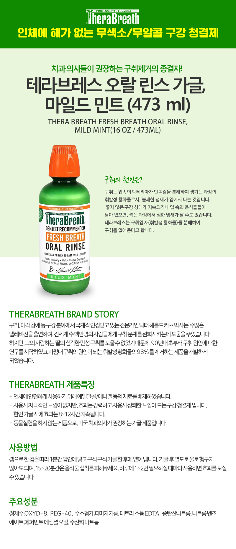 치과의사들이 추천하는 브랜드 테라브레스의 후레시 브레스 오랄 린스입니다.