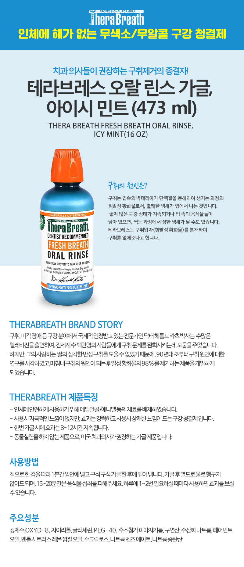 치과의사들이 추천하는 브랜드 테라브레스의 후레시 브레스 오랄 린스입니다.