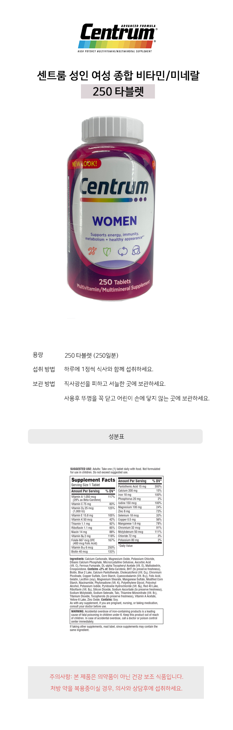 센트룸 여성 종합 비타민/멀티미네랄 250정