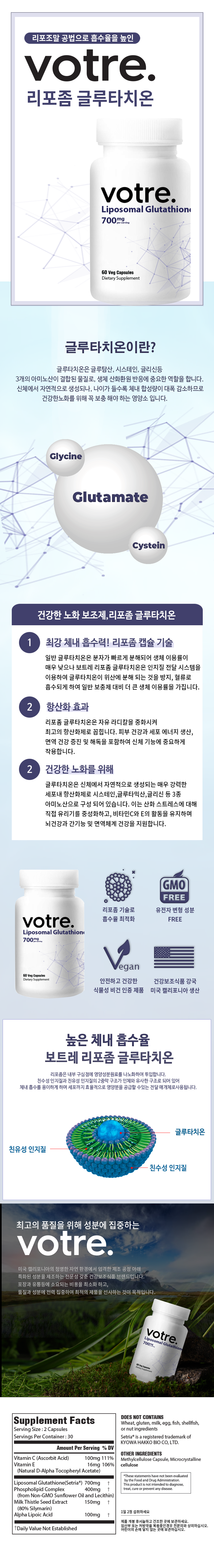 리포좀 기술이 결합되어 최대의 흡수율유전자 변형 성분 FREE안전하고 건강한 식물성 비건 인증 제품미국 생산면역관리 필수