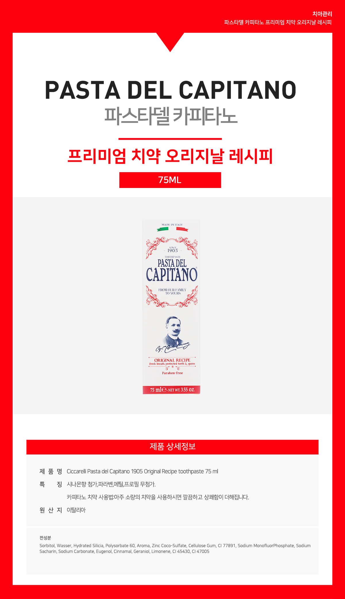 파스타델 카피타노 프리미엄 치약 오리지날 레시피