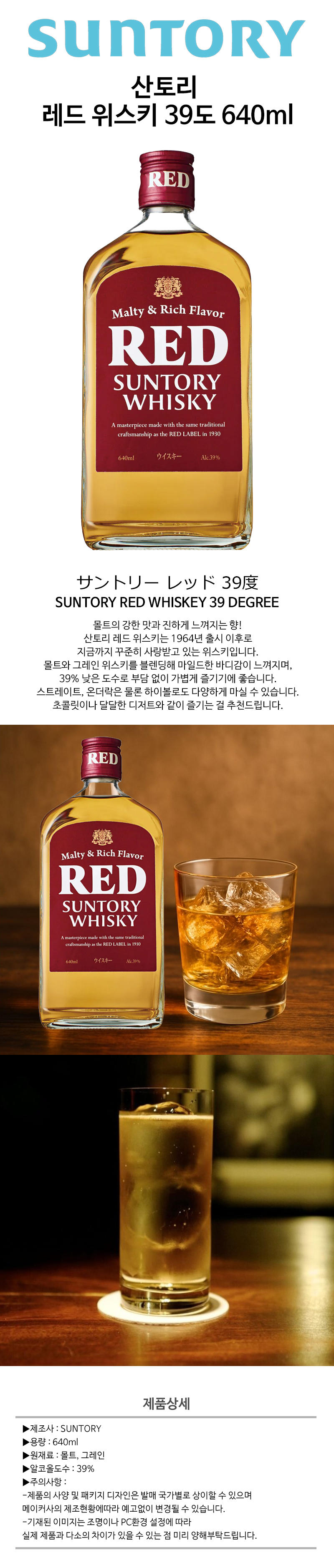 산토리 레드 위스키 39도 640ml 세금 및 배송비 포함