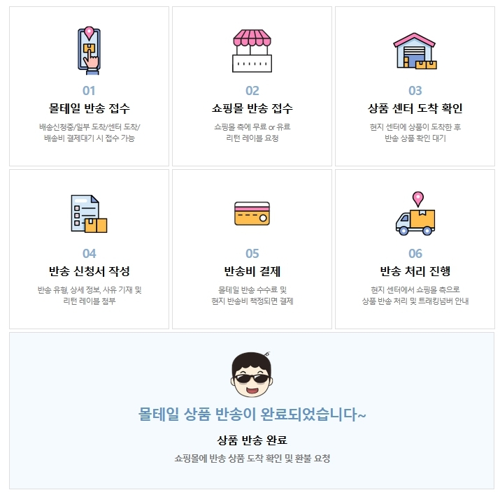 몰테일에서 반송부터 환불 처리까지 전 과정을 직접 진행해드립니다.
