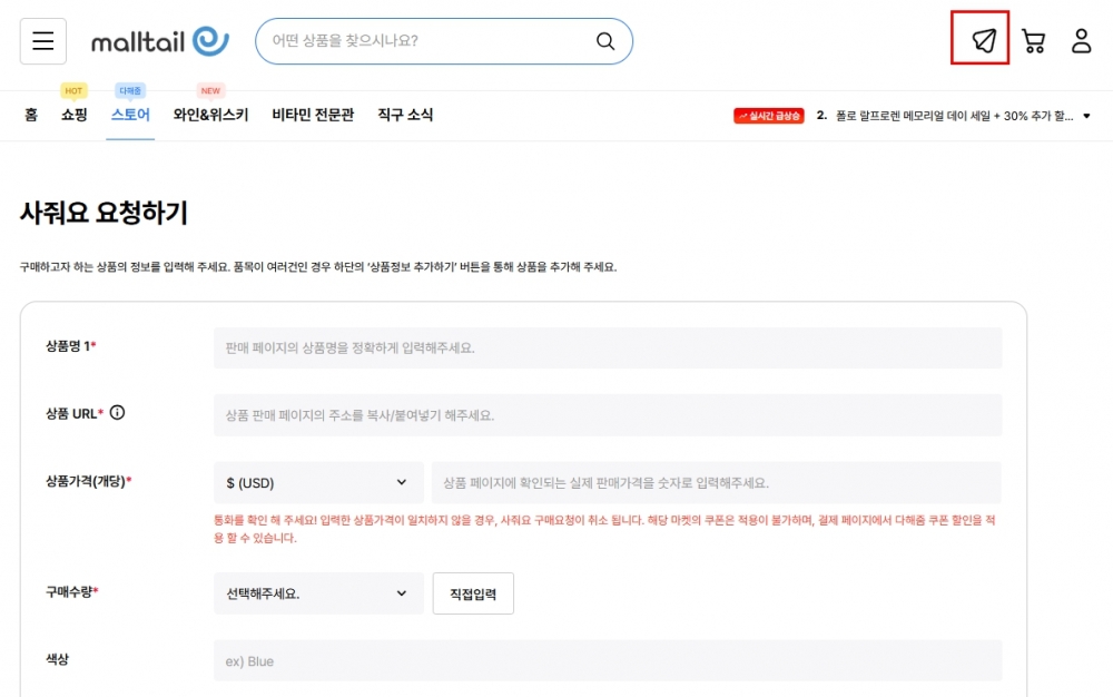 다해줌 상점에 입점되지 않은 사이트의 상품을 구매하고 싶으신 경우,