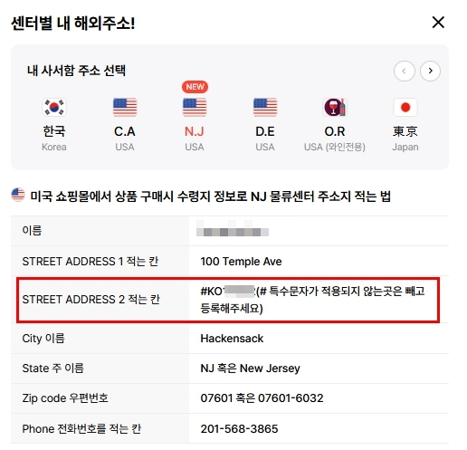 2. 상품을 NJ센터로 발송 (사서함 번호 필수 기재)