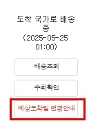 마이페이지에서 해당 건의 [도착일 변경 안내] 버튼 클릭 시,