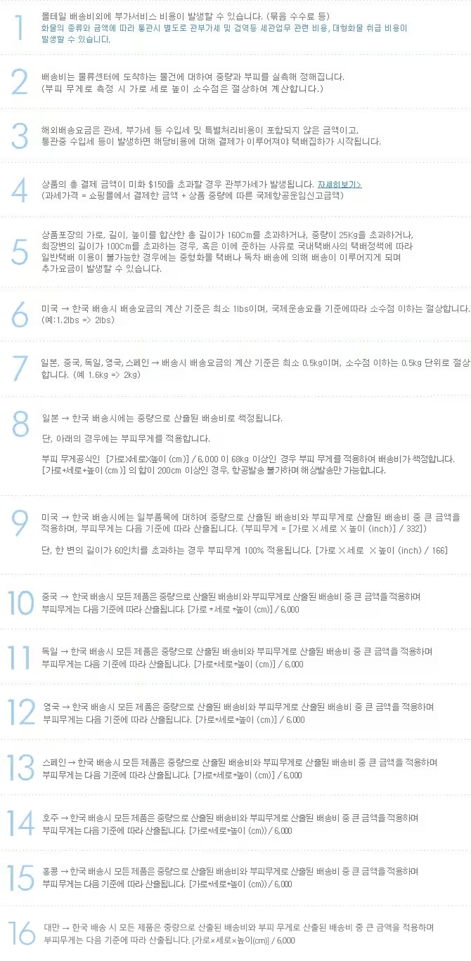 ※ 델라웨어 센터의 경우, 배송신청서 건별로 최소 수수료 $1가 부과됩니다. [자세히보기]