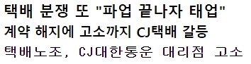 | 제목 | [공지] CJ대한통운 파업 종료 후 일부 지역 태업 안내 | 등록일 | 2022-03-15 |