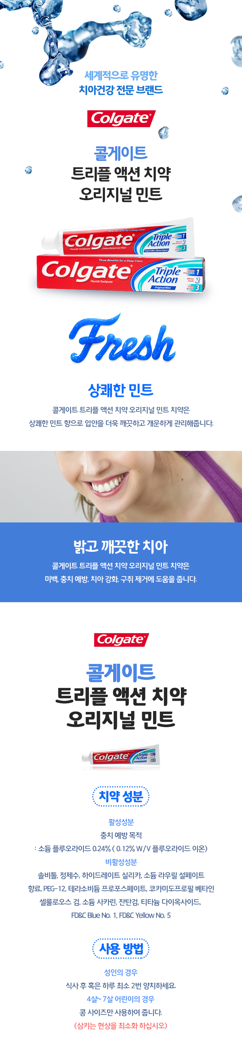 콜게이트 트리플 액션 치약, 오리지널 민트(2.5 oz,70g)