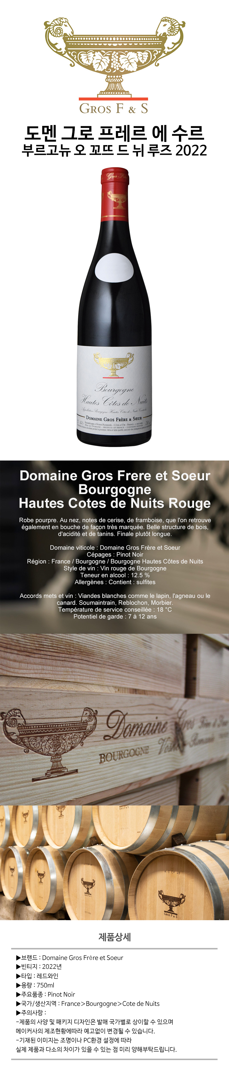 도멘 그로 프레르 에 수르 부르고뉴 오뜨 꼬뜨 드 뉘 루즈 2022 750ml 세금 및 배송비 포함