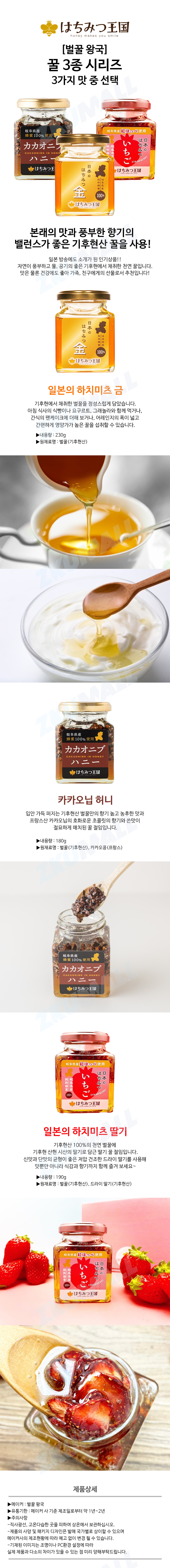 [꿀의 왕국] 일본 기후현산 꿀 허니 3종 시리즈 - 일본의 하치미츠 딸기 190g