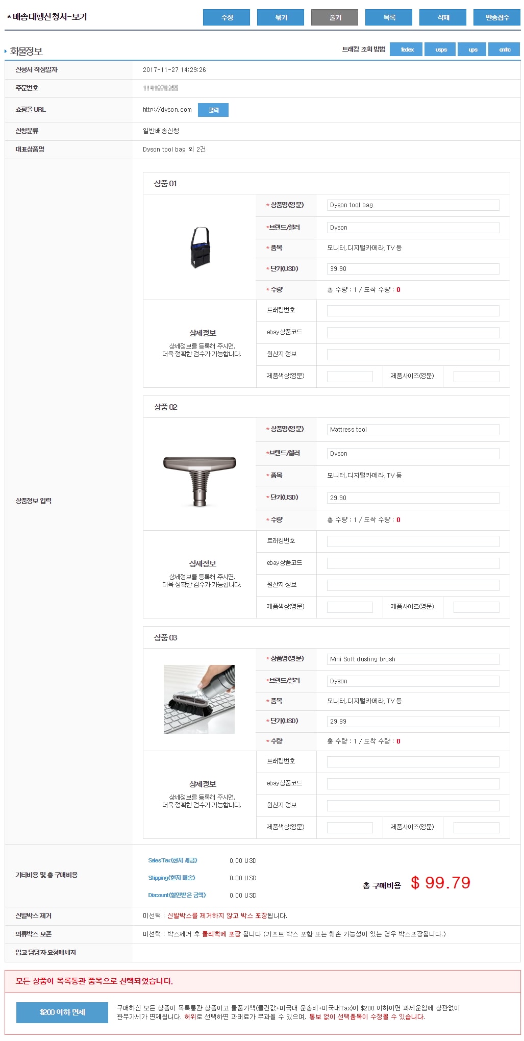 안녕하세요. 몰테일 운영자입니다. 이베이를 통해 구입한 리퍼제품에 대한 고정배송비 적용 가능여부 등에 대한 내용을 아래와 같이 안내해 드리니 서비스 이용에 참고 부탁드리겠습니다. 무료로 받은 사은품이 함께 배송 될 경우엔 원칙적으로는 고정배송비 적용이 불가합니다. 각각 다른날짜에 배송되는 것으로 확인있어 일반적인 이빠싸 고정배송비 품목에 비해 많은 검수 품이 발생되기에 전체(본품+툴)에 대한 일괄 고정가 혜택 제공에 어려움이 있습니다. ============================================================================ 3. 사은품의 가격은 절대 $1로 적으시면 안되며, 실제 해당 사은품의 상시 판매가격을 등록하셔야 합니다. 상시 판매가격은 아래 그림에서 사은품종류별로 확인하시면 되며, 이 부분은 몰테일에서 관세청 특수통관과에 공식 질의하여 받은 가이드라인입니다 ============================================================================ 이렇게 배송신청서를 각각 등록할 경우 본품이 등록된 신청서에 대해 고정가를 반영은 물론, 사은품만 등록한 배송신청서 역시 일시적으로 고정가 $9 or $15로 계측해드립니다. (단 델라웨어건은 각각의 신청서에 델라웨어 수수료 $1씩이 기존방식과 같이 부과됩니다)