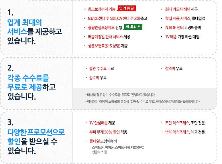 ※ 델라웨어 센터의 경우, 배송신청서 건별로 최소 수수료 $1가 부과됩니다. [자세히보기]